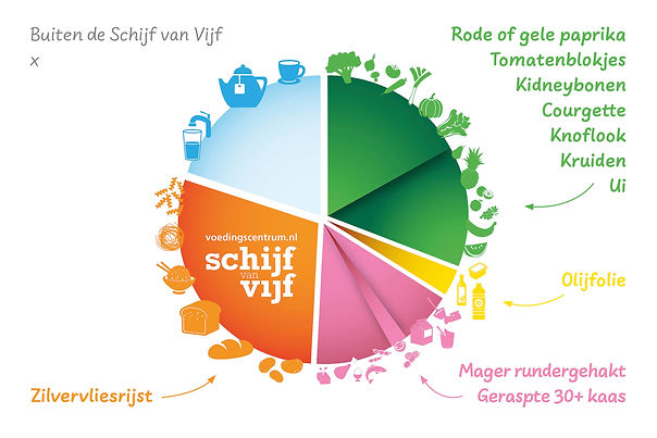 Dit gerecht bevat ingrediënten uit verschillende vakken van de Schijf van Vijf. Zie hieronder hoe dit gerecht is opgebouwd.